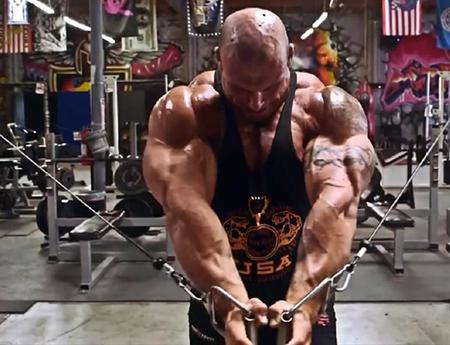 训练力竭组,就是要榨干肌肉每一分力量,从大重量递减到小重量,直至举不起手臂。