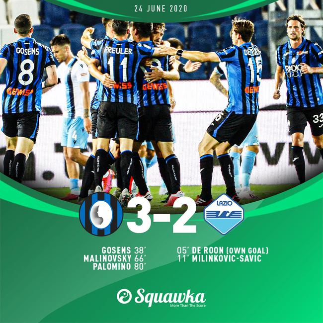 此役,亚特兰大不但实现了“让二追三”的惊天逆转,更是将处于争冠集团的拉齐奥拉下马。原本上一轮只落后榜首尤文1分的拉齐奥,如今已经落后尤文4分,陷入争冠被动之中。