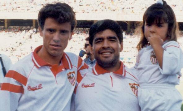 “有一个偶像当队友,一起分享更衣室,对于我们这批球员来说,就像是拿冠军的感觉。当我把队长袖标交给马拉多纳,我内心很骄傲,而并不屈辱,没有人让我这样做,但我就是很自然的觉得,他必须是塞维利亚的10号和队长。”