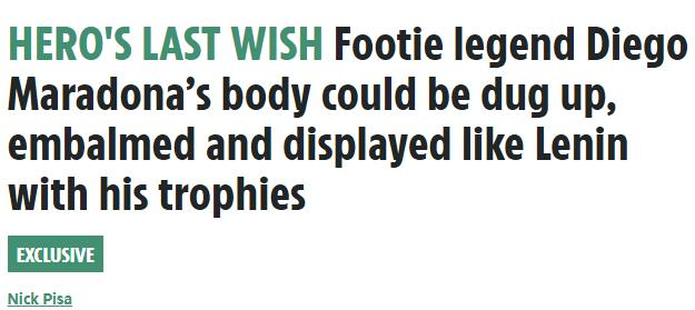 律师:挖出马拉多纳遗体 像列宁一样不朽展示