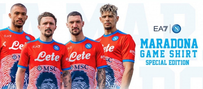 为表达对于传奇球星迭戈·马拉多纳的敬意,那不勒斯俱乐部宣布将在本轮意甲联赛主场对阵AC米兰的比赛时,球员们将身着一款由EA7设计的特别款球衣。