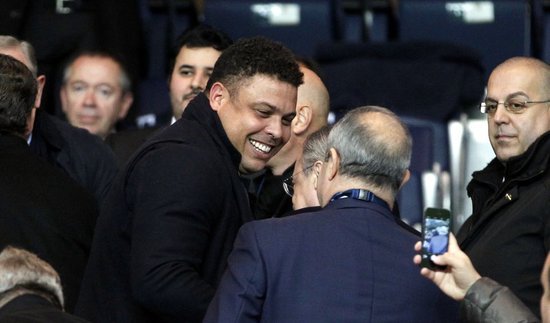 罗纳尔多、托希尔、莫拉蒂、穆里尼奥、萨内蒂并排而坐