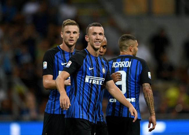赛前为巴塞罗那恐袭遇难者默哀。开场4分钟,长友佑都中场长传,伊卡尔迪停球突入禁区被阿斯托里绊倒,主裁判吹罚点球!在伊卡尔迪准备主罚时,主裁判还打手势要求录像助理裁判确认点球无误,伊卡尔迪推进右下角,1比0。长友佑都禁区左侧回传,贝西诺在门前10米处推射偏出远门柱。布罗佐维奇右路长传,佩里希奇后点凌空打偏。