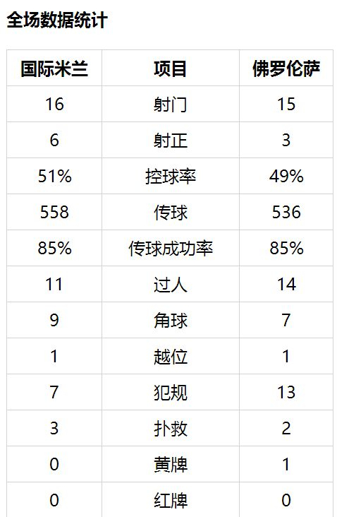 国米首轮3球完胜佛罗伦萨