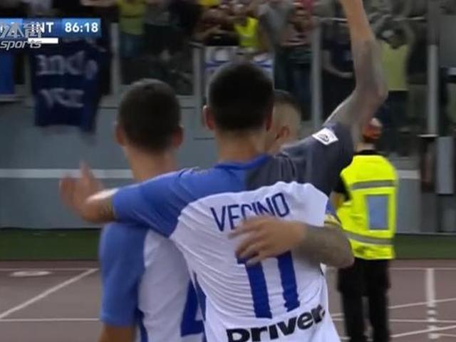 云代尔换下德罗西,坎塞洛换下坎德雷瓦,上演首秀。国米第87分钟再添一分!若昂-马里奥后场断球长途奔袭分球,佩里希奇左路传中,贝西诺在门前3米处推射入网,3比1。图米内洛换下佩罗蒂。佩里希奇再度反击分球,若昂-马里奥禁区左侧距门10米处左脚斜射被阿利松封出近角。国米最终3比1胜出。