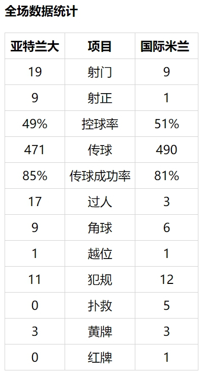 亚特兰大第88分钟锁定胜局,伊利契奇左路任意球传中,吉姆西蒂在门前6米处头球顶进远角,3比1。补时阶段,布罗佐维奇冲撞伊利契奇,吃到第2张黄牌被罚下。补时第4分钟,国米再丢一球,德鲁恩中路分球,亚历杭德罗-戈麦斯左路内切,禁区前沿打出弧线球挂远角,4比1。