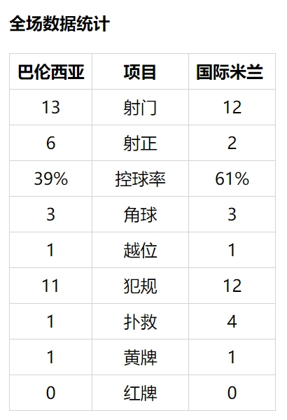 国际米兰(3-5-1-1):1-汉达诺维奇/33-丹布罗西奥,6-德弗赖,37-什克里尼亚尔(70'巴斯托尼)/87-坎德雷瓦(83'隆戈),23-巴雷拉(70'贝西诺),77-布罗佐维奇(83'博尔哈-巴莱罗),12-森西(70'加利亚尔迪尼),29-达尔贝特(70'阿萨莫阿)/16-波利塔诺(83'迪马尔科),10-劳塔罗-马丁内斯(70'埃斯波西托)