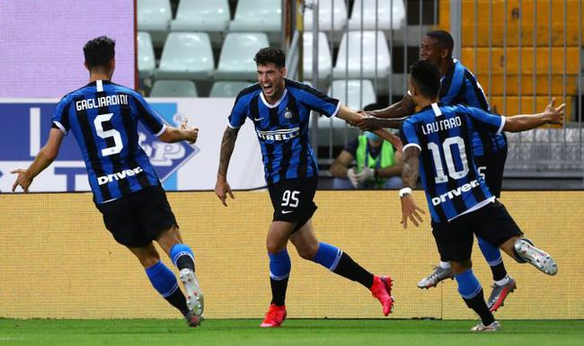 国际米兰(3-4-1-2):1-汉达诺维奇/33-丹布罗西奥,6-德弗赖,2-戈丁(73'巴斯托尼)/87-坎德雷瓦(69'摩西),23-巴雷拉,5-加利亚尔迪尼,34-比拉吉(69'阿什利-扬)/24-埃里克森(69'桑切斯)/9-卢卡库,10-劳塔罗-马丁内斯(89'博尔哈-巴莱罗)