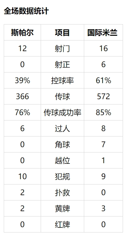 上半时斯帕尔0射正。下半时,加利亚尔迪尼脚后跟做球,劳塔罗-马丁内斯外脚背妙传,桑切斯在门前9米处推射被莱蒂卡封出左门柱。国米第55分钟扩大比分!劳塔罗-马丁内斯右路内切传桑切斯,对方后卫抢先捅掉,比拉吉左侧得球内切,禁区边缘大力抽射直窜远角,2比0。