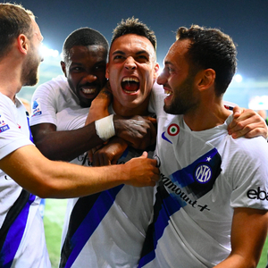 国米首发:1-索默、6-德弗里、15-阿切尔比、28-帕瓦尔(56’ 2-邓弗里斯)、32-迪马尔科(56’ 30-奥古斯托)、36-达米安(91’ 31-比塞克)、20-恰尔汗奥卢、22-姆希塔良、23-巴雷拉(56’ 16-弗拉泰西)、9-图拉姆、10-劳塔罗(82’ 14-克拉森)