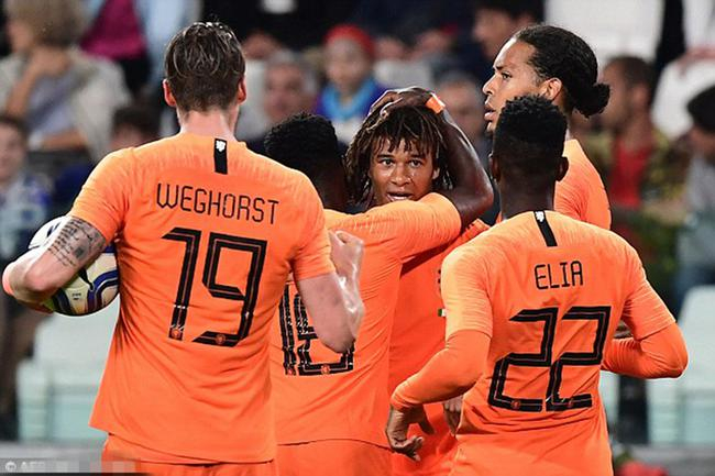 荷兰(5-3-2):1-西莱森/2-哈特布尔(46'扬马特),3-德利赫特(71'阿克),4-范戴克,5-布林德(78'维格赫斯特),11-维列纳/6-德罗恩(78'普罗梅斯),7-福默(70'博赫海斯),8-维纳尔杜姆/9-巴贝尔(83'埃利亚),10-德佩