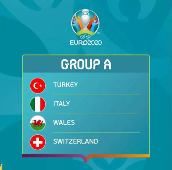 意大利被分在A组,同组对手是瑞士、土耳其、威尔士;