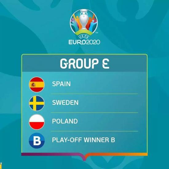 西班牙被分在E组,同组对手波兰、瑞典和附加赛出线球队。