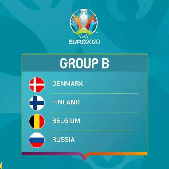 比利时被分在B组,同组对手是俄罗斯、丹麦、芬兰;