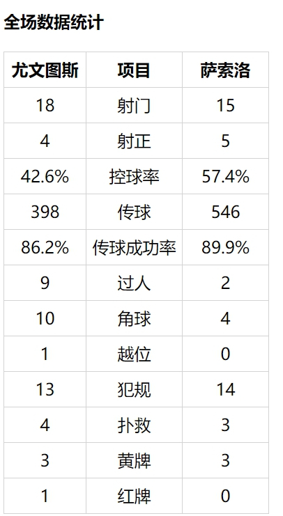 上半时尤文竟然没有1次射正,甚至控球率也不占优势(46.4%),传球成功率(86%)也低于萨索洛(87%)。但下半时开始仅5分钟,C罗进球了!迪巴拉右侧开出角球,博努奇小禁区边缘背身外脚背弹射蹭马龙变线,费拉里后点下意识头球解围击中近门柱,C罗轻松右脚外脚背垫过门线,1比0。