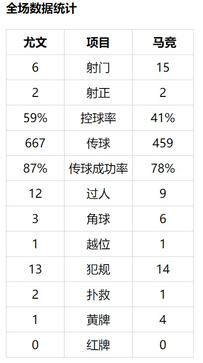 尤文上半时补时第2分钟取得领先!埃尔莫索放倒本坦库尔,尤文在右侧底线附近获得任意球,迪巴拉主罚直接小角度打进远角,1比0。这和他尤文生涯第10次直接任意球破门,也是2018年3月意甲对乌迪内斯之后的首度任意球破门,个人欧冠14粒进球全部是左脚打进。奥布拉克代表马竞首次连续6场正式比赛失球。