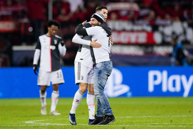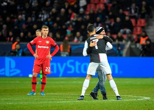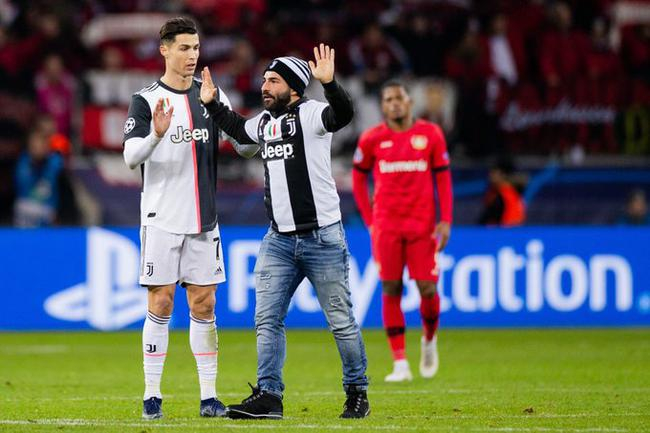 比赛还未结束,先后有两名球迷冲进场内。终场哨响后,C罗与队友们庆祝,又有一名球迷冲进场内,搂住C罗的脖子欲自拍合影,C罗非常不悦将他甩开,保安将球迷抱走。C罗摸着脖子后侧,嘴里说着什么,似乎受了点伤。布冯与博努奇上前与他开起玩笑。