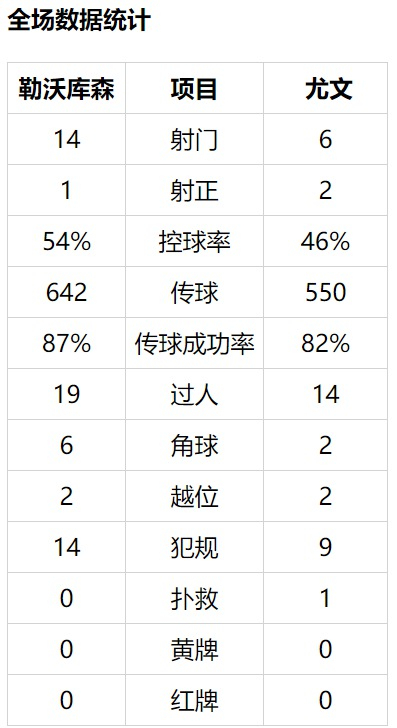 勒沃库森(4-4-2):1-赫拉德茨基/8-拉斯.本德,6-德拉戈维奇,5-斯文-本德,22-辛克赫拉芬)/38-贝拉拉比(66'贝利),10-德米尔巴伊(66'鲍姆加特林格),20-阿朗吉斯,19-迪亚比/29-哈弗茨,13-阿拉里奥(82'福兰德)