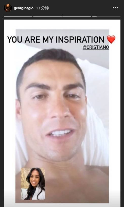 C罗女友乔治娜刚刚晒出自己同C罗视频聊天的截图,并配文:“你是我的精神动力。”