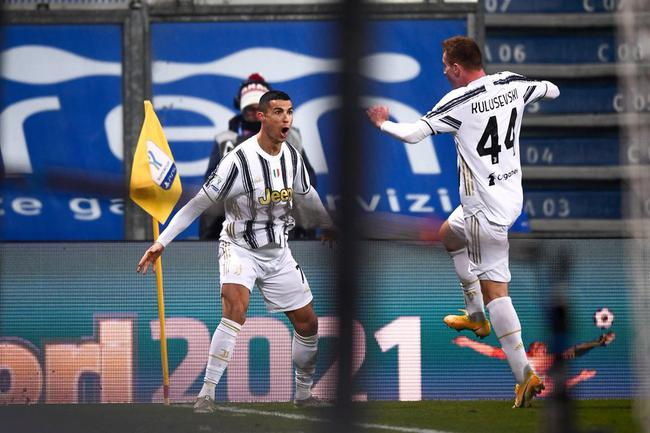 尤文图斯(4-4-2):1-斯琴斯尼/16-夸德拉多,19-博努奇,3-基耶利尼,13-达尼洛/14-麦肯尼,5-阿图尔,30-本坦库尔(84'拉比奥), 22-小基耶萨(46'贝尔纳代斯基)/44-库卢塞夫斯基(84'莫拉塔),7-C罗