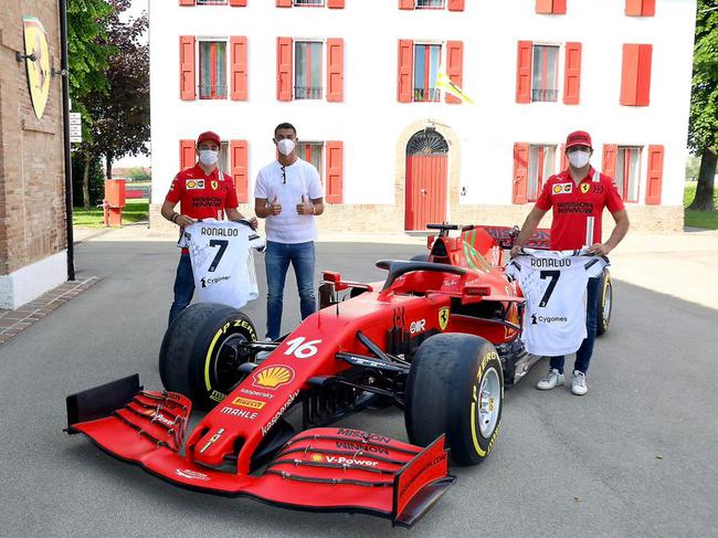 法拉利发布了C罗与车手勒克莱尔、小塞恩斯的合影,3人名字都是以C开头,法拉利称:“你能算出来吗?C² + CR7=C100。”