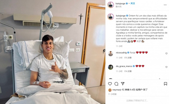 尤文图斯前锋若热昨夜成功接受手术后在Instagram上发文,向球迷们报平安。