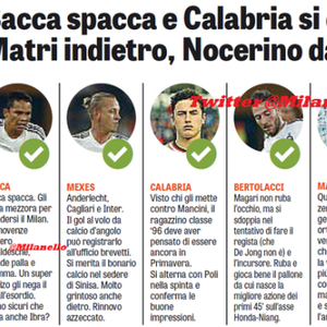 AC米兰[微博]在国际冠军杯比赛中1比0击败国际米兰[微博],新援巴卡和贝尔托拉奇表现获得意大利媒体称赞,续约的梅克斯和19岁小将卡拉布里亚也被点赞。而两位边缘人则演砸了自己的救赎战。