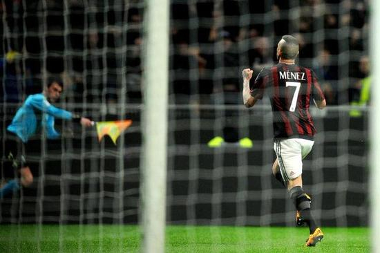 AC米兰第39分钟终结悬念,波利中路分球,本田圭佑等波利套上后左脚直塞,波利禁区右侧传中,梅内在门前5米处推进远角,3比0,他上次梅开二度是去年3月21日(AC米兰3比1胜卡利亚里)。