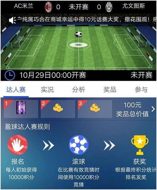 参与新浪体育达人竞猜,在有效竞猜时间内投注本场胜平负、单双、总进球、下一进球、比分五种玩法赚取积分。最终积分排名最高者将收获100话费大奖!88位小伙伴已经报名,心动不如行动,海量话费券、京东卡等你来拿!点击这里参与竞猜