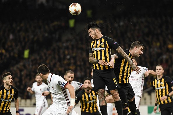 开场12分钟,AEK左路传中被顶出,加洛右侧禁区角上大力斜射偏出右门柱。此后博里尼前场横传失误,蒙托利沃没拿到球,埃尔德-洛佩斯左路反击与阿劳霍踢墙配合,突入禁区左侧小角度射门造成唐纳鲁马脱手,好在无人补射。AC米兰第44分钟才有首次射门,博努奇外围打高。上半时结束前,AEK右侧角球回敲,加洛左脚似传似射险入远角。