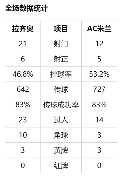 易边一开球,拉齐奥就制造杀机,米林科维奇-萨维奇趟过博努奇形成单刀,罗马尼奥利铲出底线!博里尼换下苏索。AC米兰第117分钟错过绝杀!博努奇助攻到前场垫传,卡利尼奇左侧距门11米处推射高出。3分钟后,里卡多-罗德里格斯左路长传,卡利尼奇停球距门8米处半凌空打飞,但已越位在先。