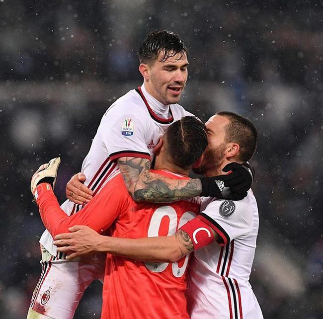 AC米兰(4-3-3):99-唐纳鲁马/2-卡拉布里亚,19-博努奇,13-罗马尼奥利,68-里卡多-罗德里格斯/79-凯西(96'蒙托利沃),21-比格利亚,5-博纳文图拉/8-苏索(108'博里尼),63-库特罗内(70'卡利尼奇),10-恰尔汉奥卢