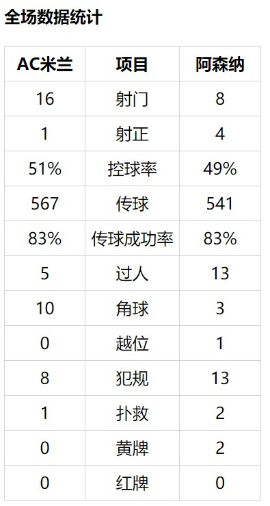 欧联-姆希处子球+中楣 厄祖2传 AC米兰0-2阿森纳
