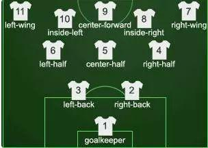 传统英格兰2-3-5阵型中球衣号码的分布