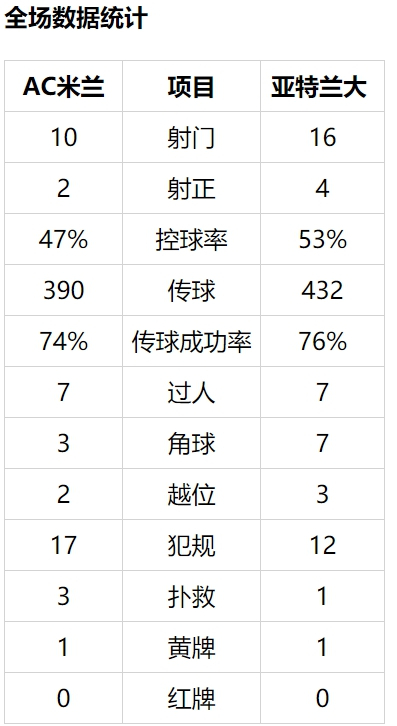 伊布反身直传,恰尔汉奥卢禁区弧顶单刀抽射击中横梁,但越位在先。亚特兰大第34分钟追平!弗罗伊勒抢断比格利亚,与德鲁恩打出踢墙配合,禁区前沿连续两脚射门均被加比亚封堵,但杜万-萨帕塔左侧得球摆脱卡拉布里亚,左脚小角度低射穿过唐纳鲁马腋下入远角,1比1。