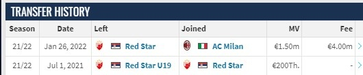 直播吧1月27日讯 意甲官网显示,贝尔格莱德红星18岁中锋拉泽蒂奇加盟米兰已完成。德转显示球员转会费400万欧。