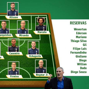 巴西(4-1-4-1):1-阿利松/22-法格纳,13-马尔基尼奥斯,3-米兰达,16-马塞洛/5-卡塞米罗/15-保利尼奥,8-雷纳托-奥古斯托,15-库蒂尼奥,10-内马尔/21-菲尔米诺