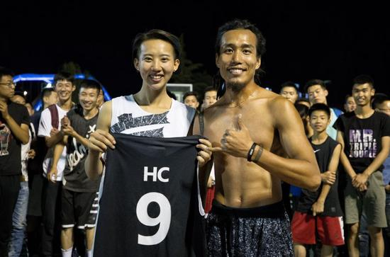 能和自己的街球偶像韩潮过招,她已经很开心了。