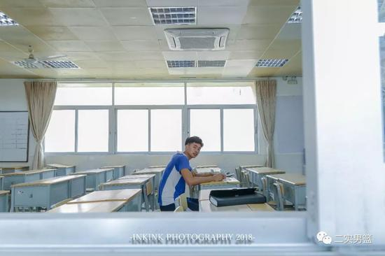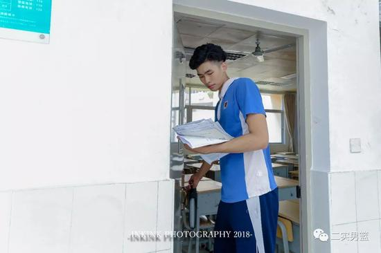 在高考备考期间,我也去班上看过他几次,在教室里学习的他真的乖巧的不得了,所以也以这个内容为主题,给他拍了这组颇有校园气息的写真。