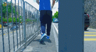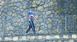 这个镜头是我们很喜欢的,邹阳所在的深圳二实正对面,有一条看起来像小山路的地方,邹阳在对面走,我们在对面拍,他的后面不时有汽车经过。后来我们才知道邹阳的老家是重庆,这段路,不就是山城重庆宛转的小路吗?