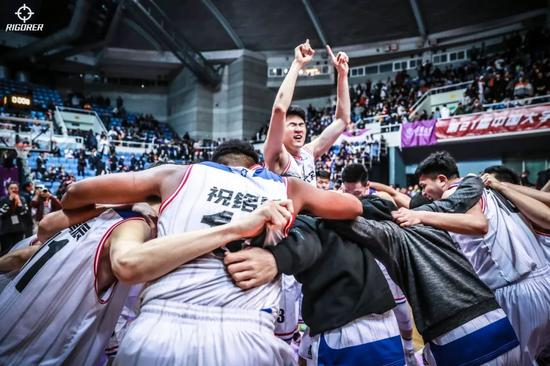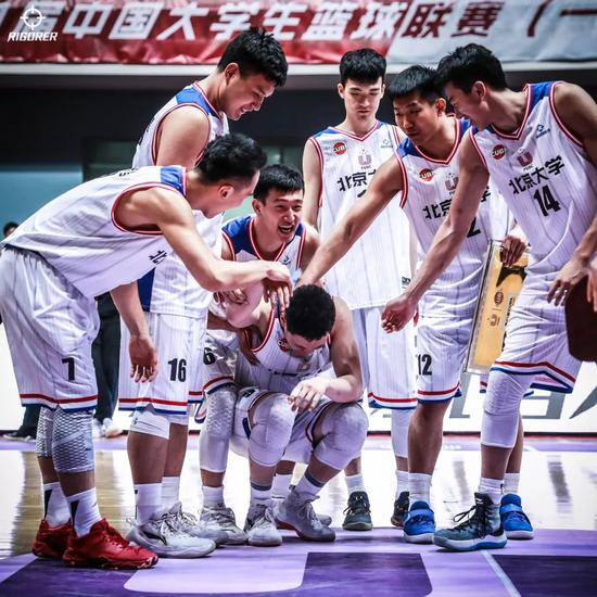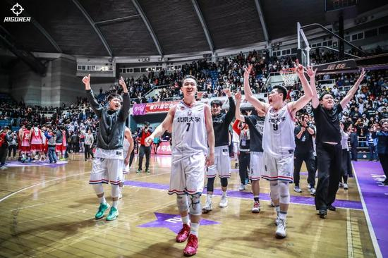 北大的球员们在场中央庆祝,热泪盈眶
