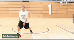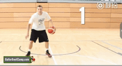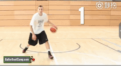 然后再做五次胯下换手运球