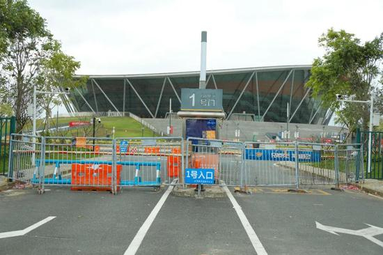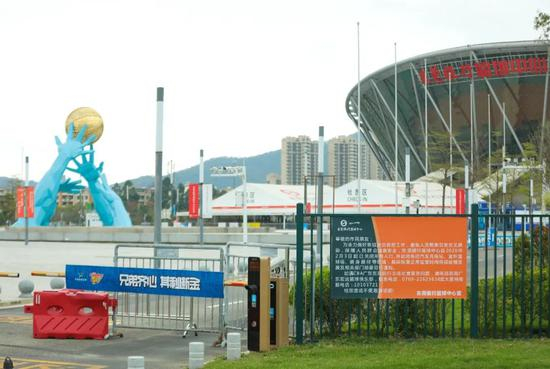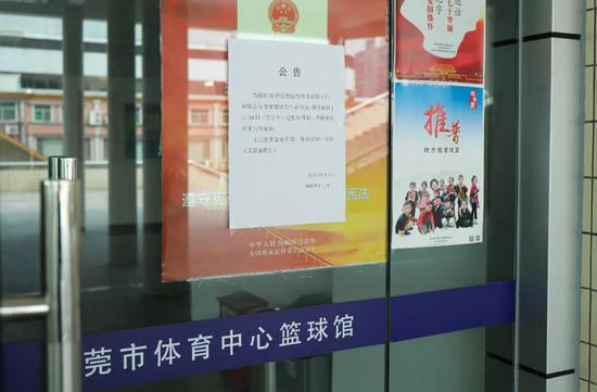 东莞市体育中心也是大门紧闭,只留下一张拒人于千里之外的布告。