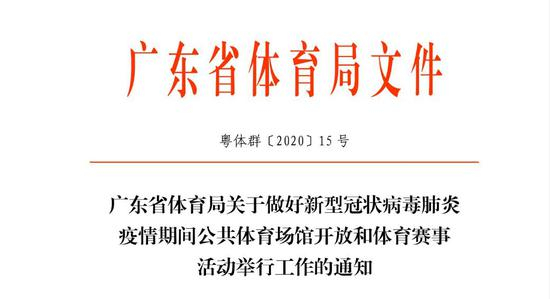 3月5日,广东省体育局发布了关于疫情期间公共体育场馆开放和体育赛事活动举行工作的通知。