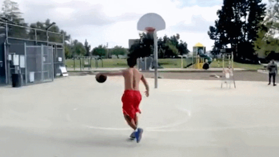 行进间的动作,关键就在于对收球时间的判断,这个案例中,视频球员从结束运球到收球过程中,采用了非常流畅且娴熟的地面步伐,甚至在地面都完成了好几步。