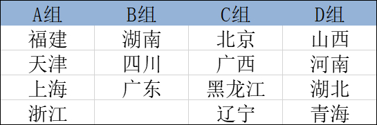 女子成年组分组如下
