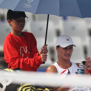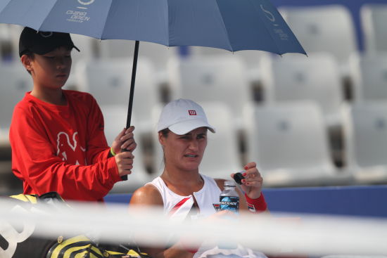图文-中网球童选拔在即 小球童太阳下为球员撑伞