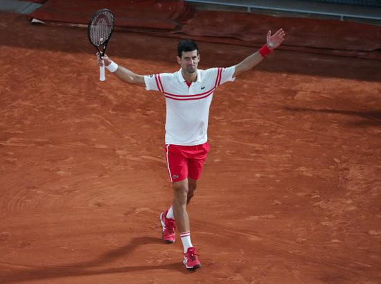 6月11日,焦科维奇庆祝胜利。新华社记者高静摄