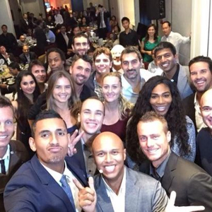 在新加坡参加表演赛(IPTL)的有阿加西、小威[微博]、休伊特、西里奇、伯蒂奇、孟菲尔斯、阿加西等人,他们在赛后来了一张大合照。这张自拍被放到网上后引发了不俗反响,图中的网坛明星们共斩获70个大满贯冠军,包括32个单打,20个女双/男双,以及18个混双。有单双打现NO.1、前NO.1,有奥运会冠军,戴维斯杯/联合会杯冠军。可谓是星光熠熠!