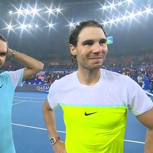 随后的男双费德勒和纳达尔的出场引起了全场观众的热烈欢呼,双方的球迷也都不遗余力在为自己的偶像加油,这是费德勒和纳达尔首次在IPTL里对决,最终费德勒的发球局被破发,从而输掉了男双。